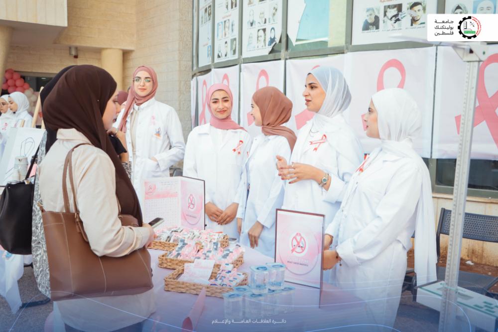 نظّمت كلية التمريض في جامعة بوليتكنك فلسطين يوم الثلاثاء الموافق ٧ تشرين الأول ٢٠٢٥ فعالية توعوية بمناسبة شهر التوعية بسرطان الثدي (أكتوبر الوردي)، بهدف نشر الوعي بأهمية الكشف المبكر وتعزيز مفهوم الوقاية الصحية بين الطلبة والمجتمع المحلي.
