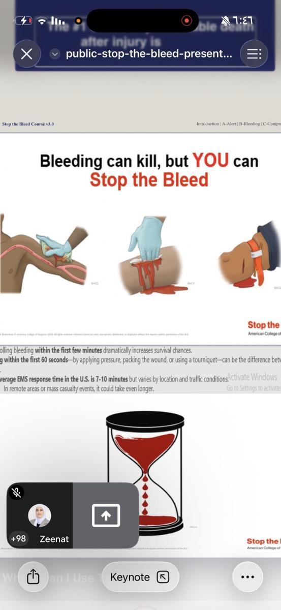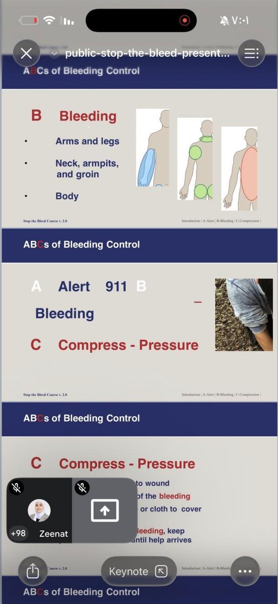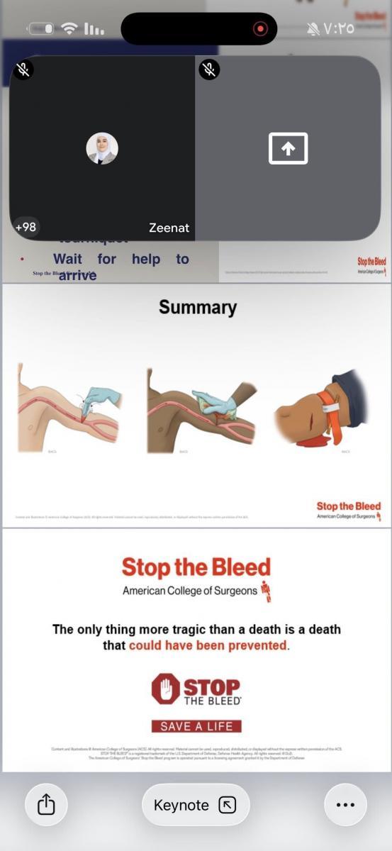 تضمّنت الدورة تدريبًا علميًا حول أحدث الأساليب المعتمدة دوليًا في التعامل مع حالات النزيف الطارئة وطرق السيطرة السريعة وإنقاذ الحياة.