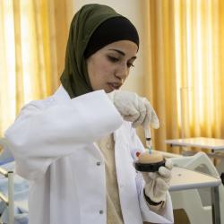 - مهارات التمريض الأساسية: تشمل غسل اليدين بالماء والصابون أو الكحول، ترتيب سرير المريض، تقديم الرعاية الشاملة للمريض، وتغذيته بطرق متنوعة، بما في ذلك تركيب أنبوب المعدة.